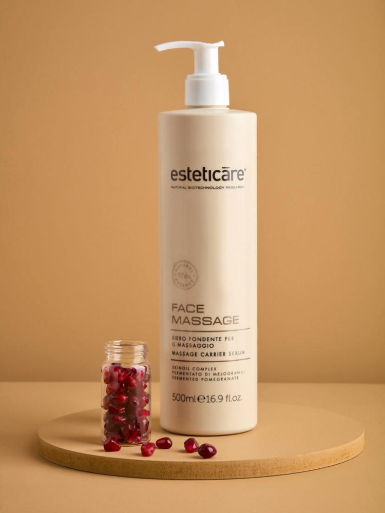مستحلب سائل سهل الذوبان، مُركّب من الرمان المُخمّر ومركّب زيوت البشرة - مزيج من الزيوت والزبدات يُوفّر انزلاقًا مثاليًا، مُطوّر خصيصًا لمرحلة التدليك، يُنشّط الدورة الدموية الدقيقة على سطح البشرة، ليتركها أكثر تماسكًا وإشراقًا، ومناسب لجميع أنواع البشرة.